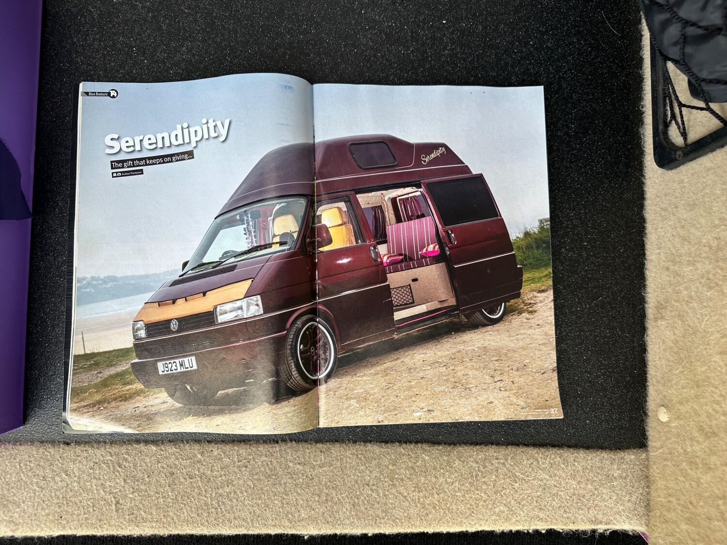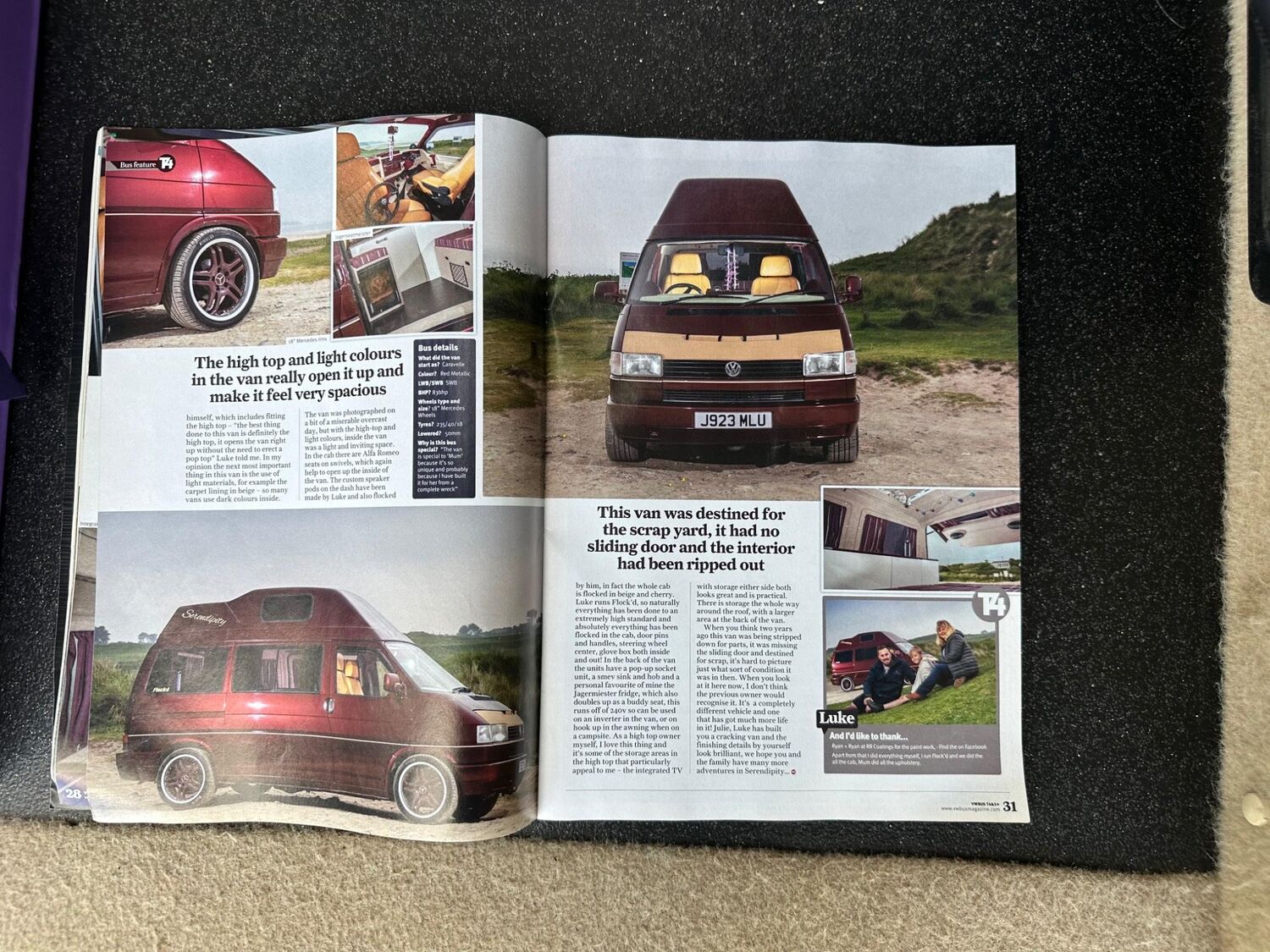 This magazine featured Vw T4 2.0 petrol started life with humble beginnings. It’s been transformed into a very very retro one off high top camper that’s just had lots of of work done to get it back on the road.